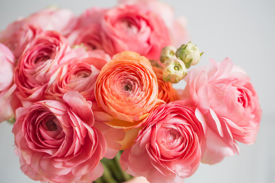 ふんわりとした花姿とピンクや黄色などの美しい花色も魅力であり、白や黄色、オレンジ、緑のラナンキュラスなど様々なカラーバリエーションがございます。